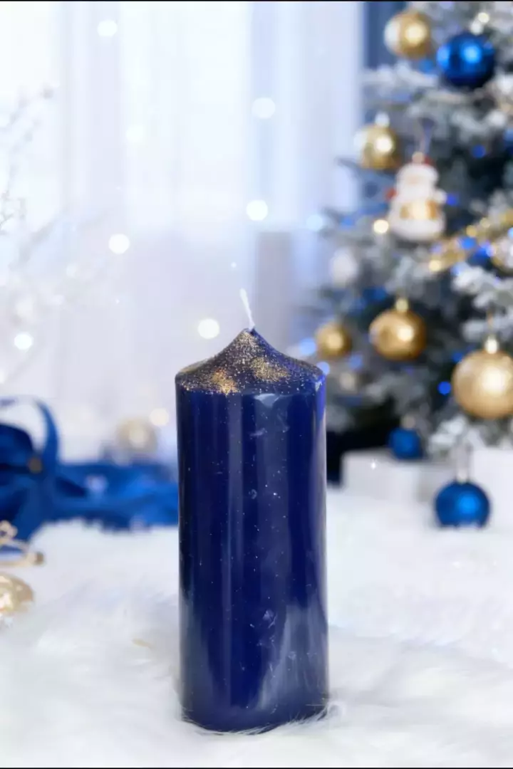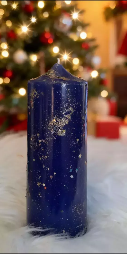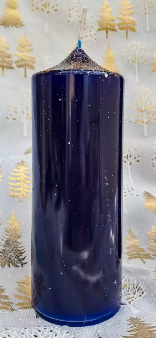 Ces bougies sont faites main donc il n’y en a pas une pareille à l’autre. Elles sont laquées et pailletées. Hauteur : 19,5cm diamètre : 6,7 cm. Poids de cire : 560G soit 112 heures de combustion