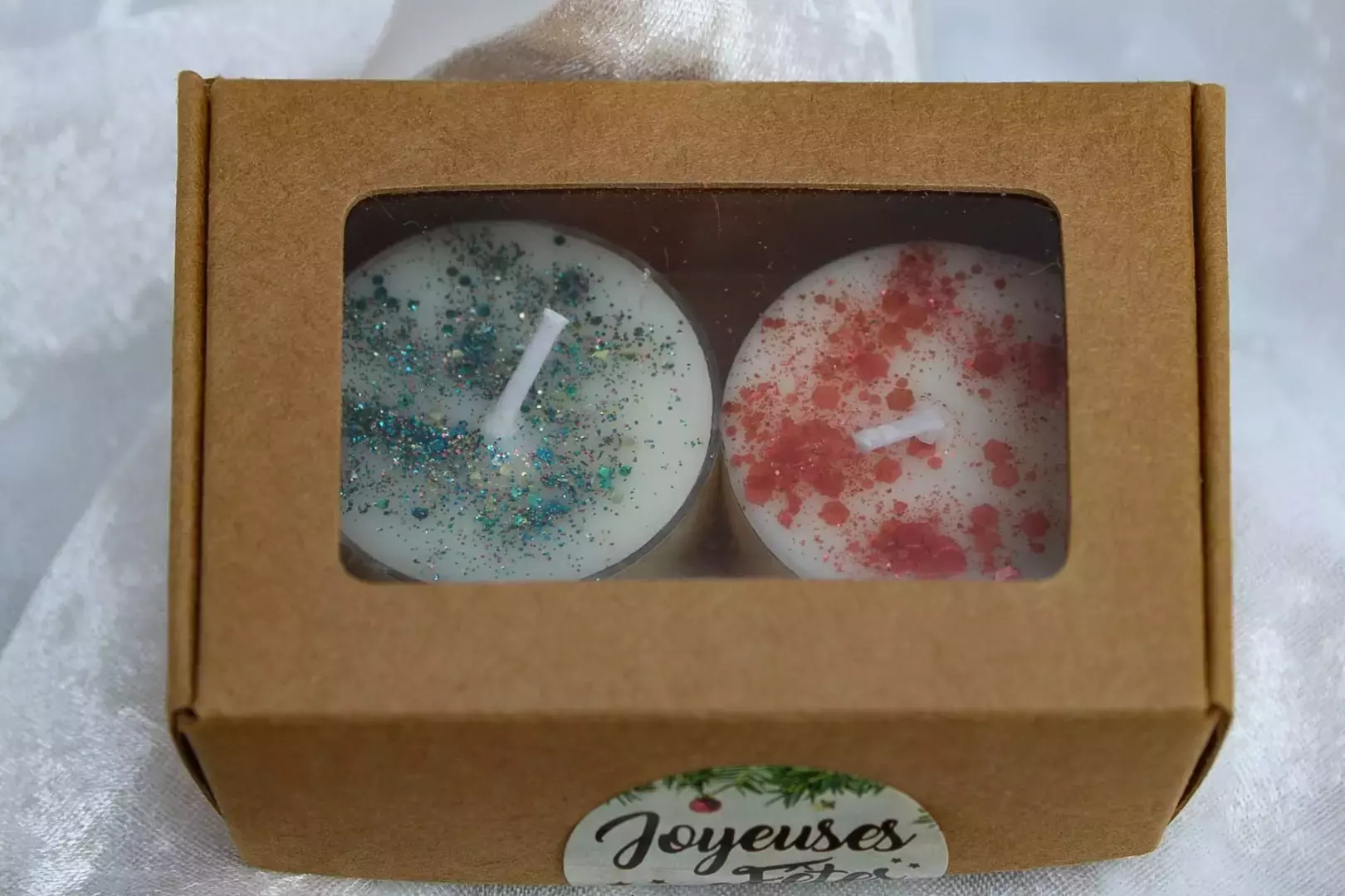 Bougies chauffe plat vendus par 2 dans une petite boite en papier kraft.