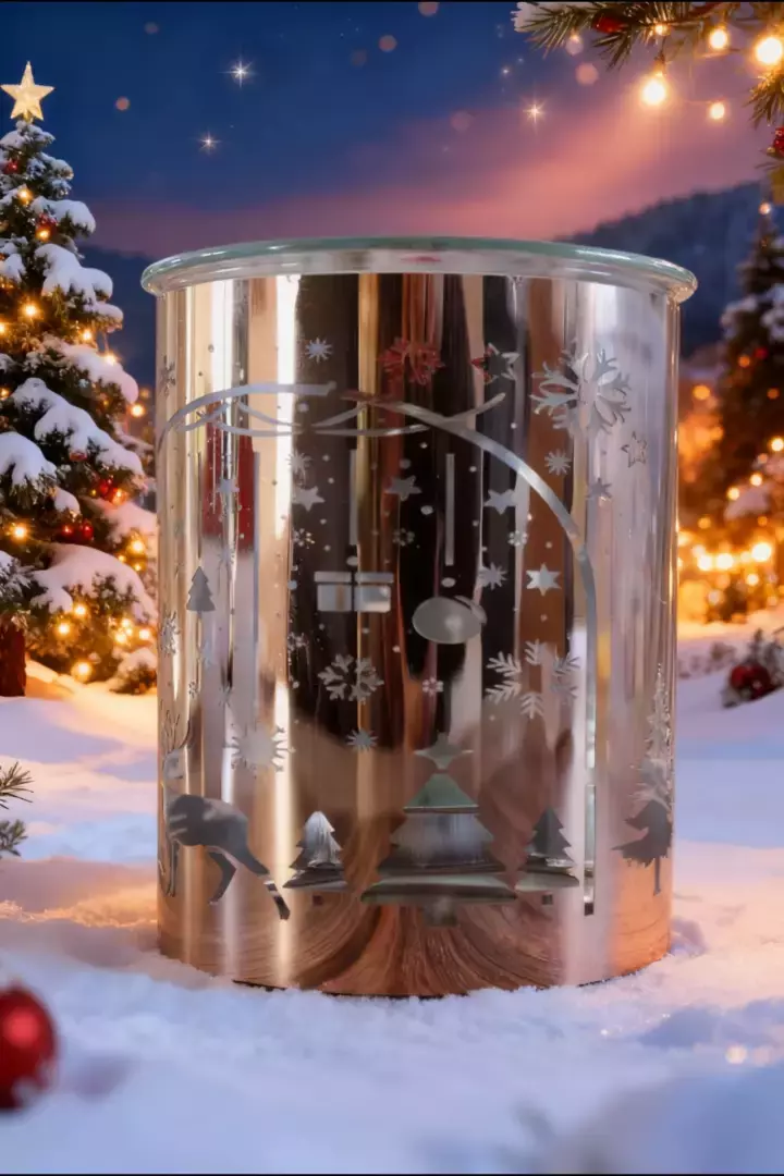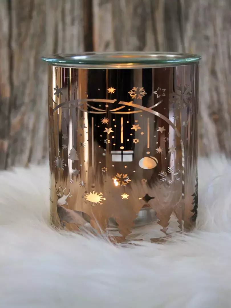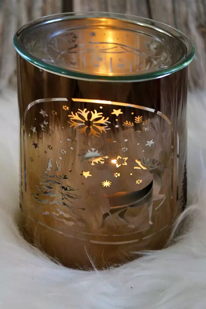Hauteur : 16cm ; largeur : 9cm. Rond en fer couleur cuivre avec une coupelle en verre sur le dessus pour accueillir un fondant ou huile essentielle. Hauteur : 11,5cm diamètre :10cm