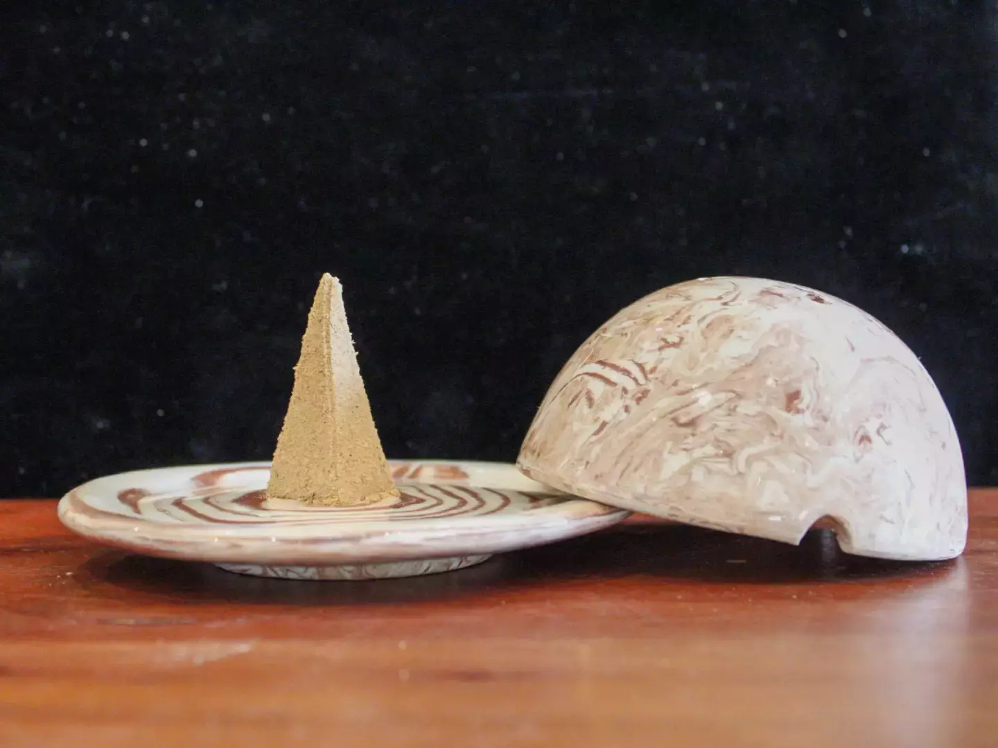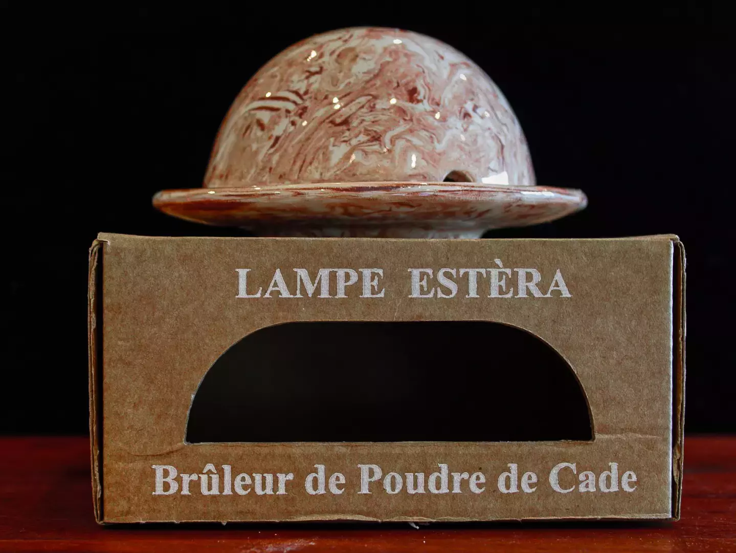 Le bois de cade qui purifie l’air de la maison, éloigne les insectes volants et est également un puissant anti-mites. Mode d’emploi : Dans chaque boite de poudre de cade se trouve un cône en carton qu’il suffit de remplir de poudre en tassant bien. Transvaser ce cône de poudre sur la coupelle du diffuseur. Allumer le cône avec un briquet ou allumettes. Remettre le couvercle sur la coupelle. Au bout de quelques secondes, la poudre se diffuse par les trous du diffuseur en créant des volutes qui se diffuseront par les trous du diffuseur. Le mode d’emploi se trouve sur la boite et dans les coffrets. Durée de combustion entre 30 et 40 minutes.