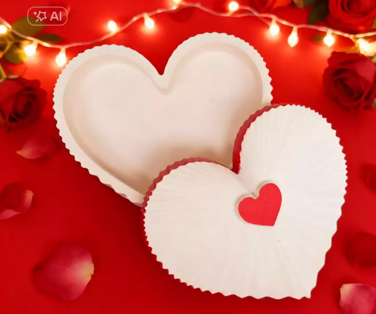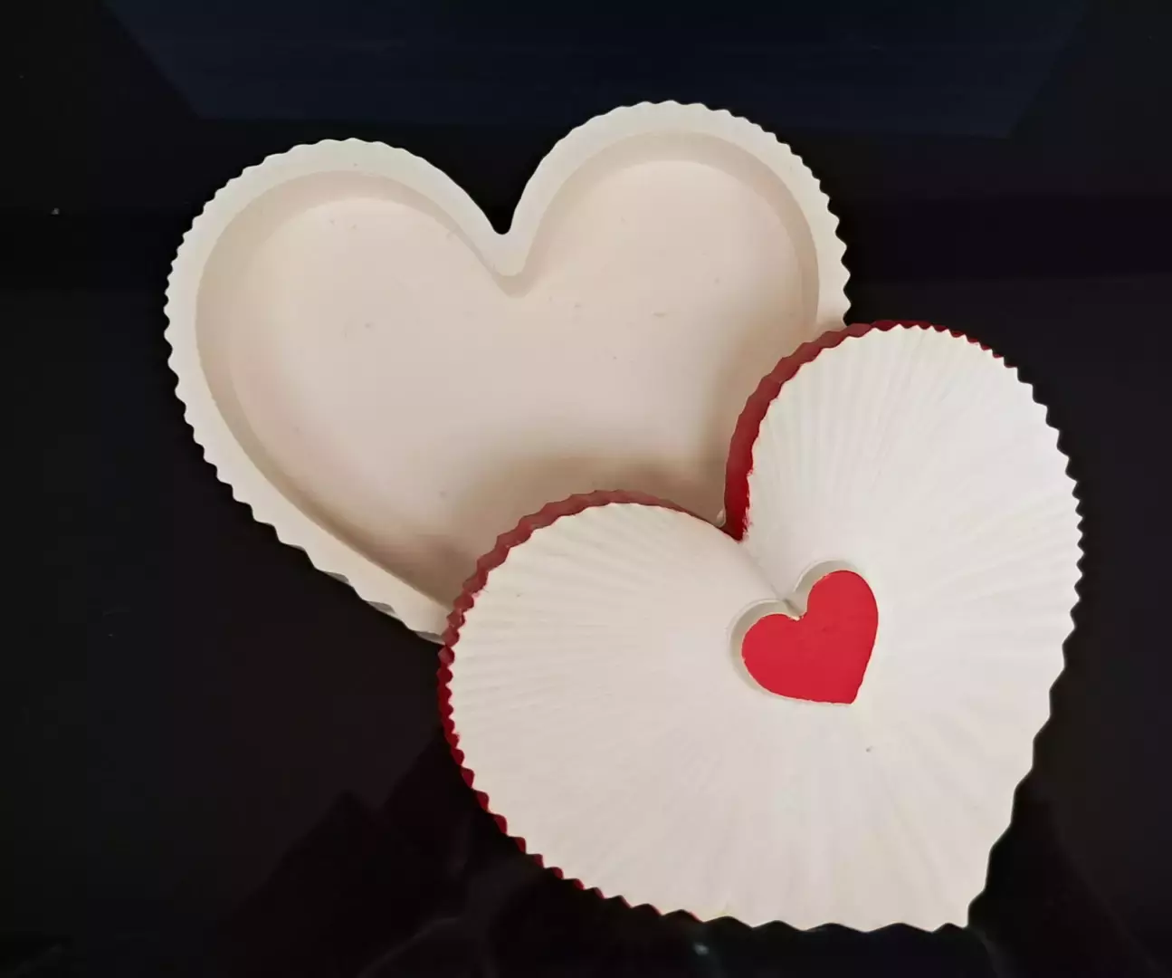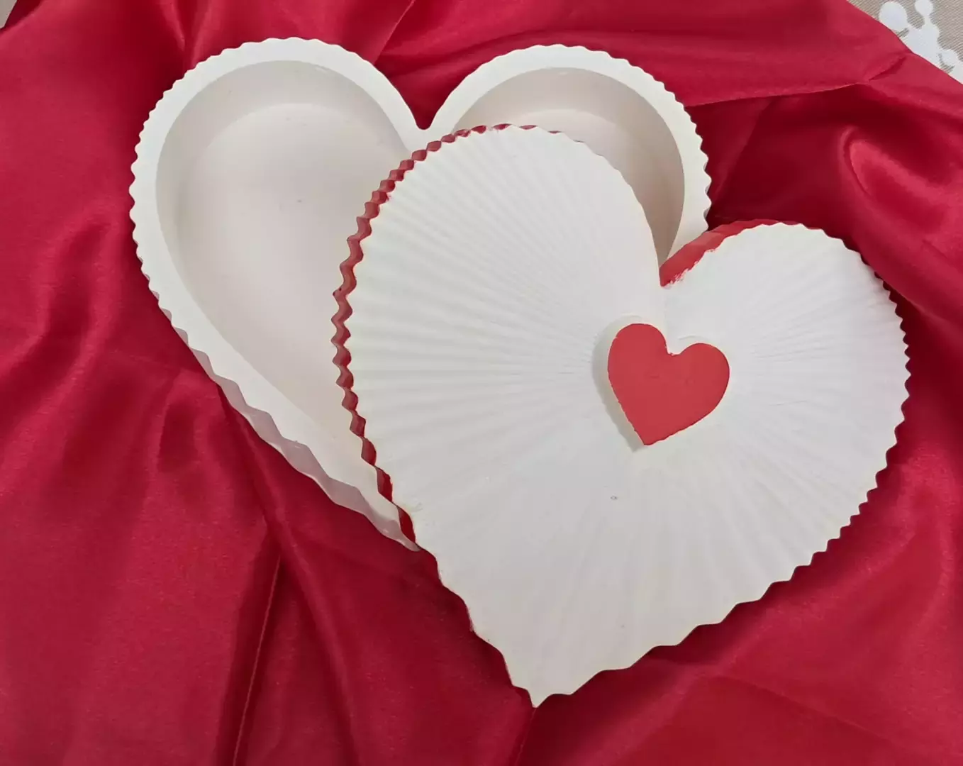 Boîte faite main et peinte à la main : deux couleurs : blanc et rouge et blanc et or. Dimensions : largeur 14,8cm x longueur 11,8cm x hauteur : 4,2cm