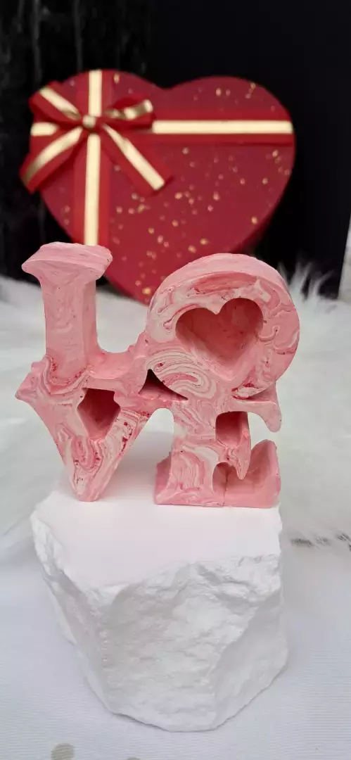 « LOVE » en 4 lettres en jesmonite fait main. 3 couleurs possible : rose marbré, jaune marbré et noir marbré. Dimension 7x7cm. Poids 78g